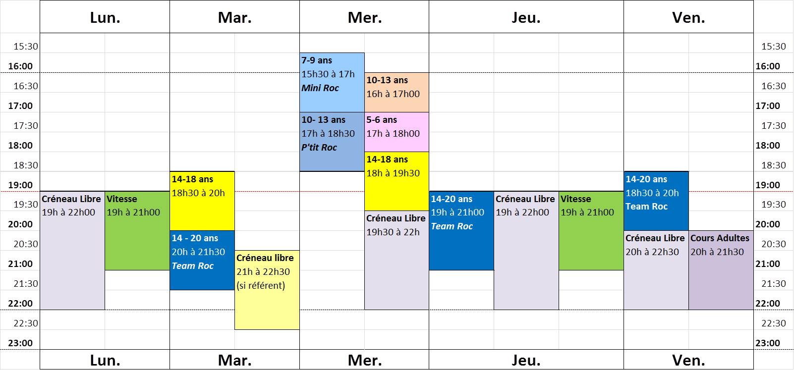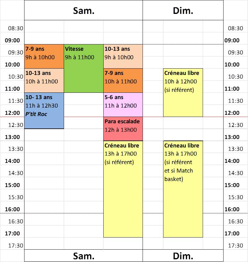 Les créneaux en accès libre du Weekend ne seront ouverts que si un référent escalade est présent (voir calendrier ou What'sapp).